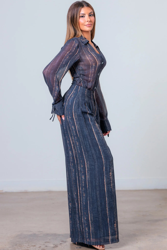 Conjunto de top y pantalón con estampado brillante degradado